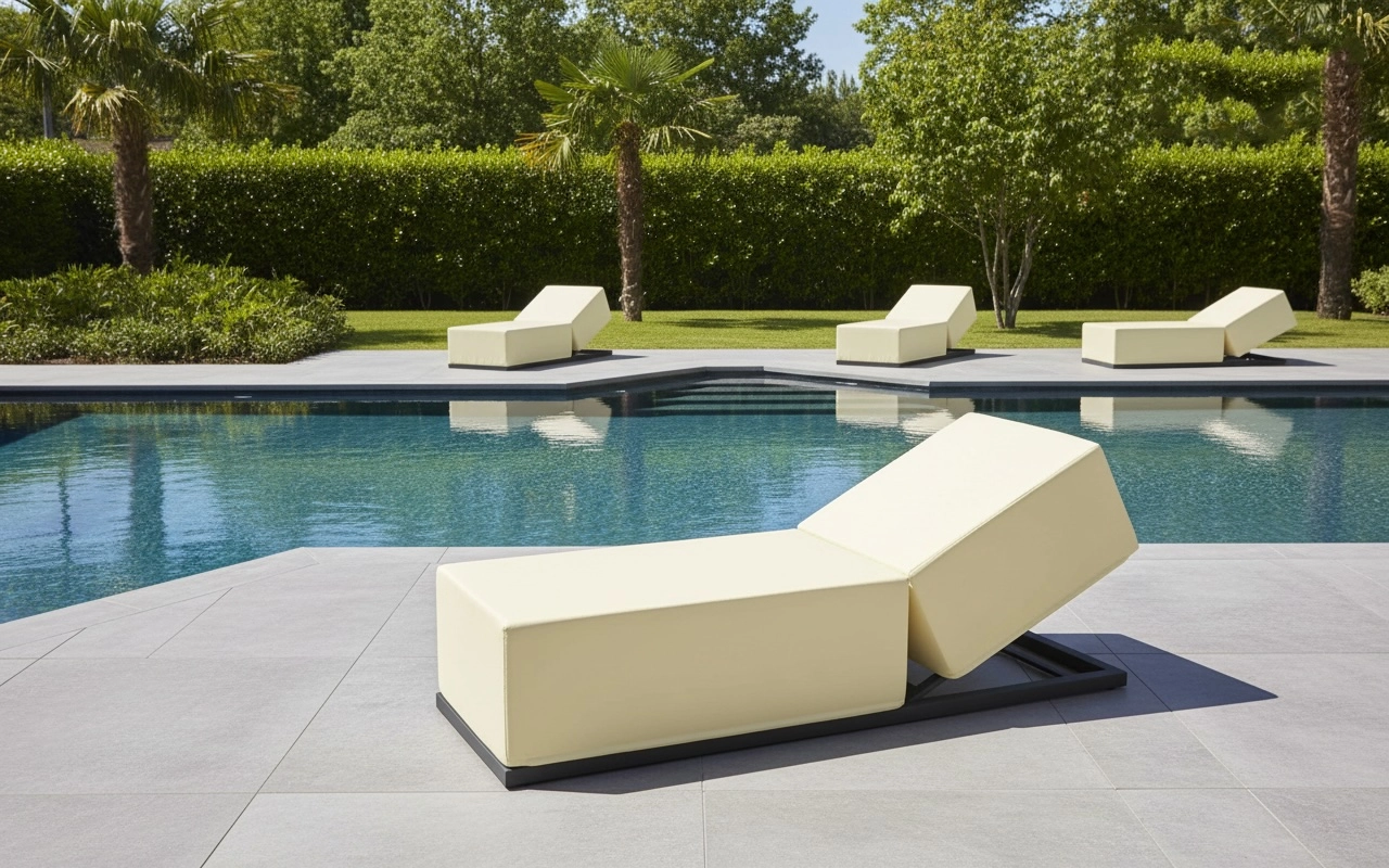 Lehátka a plážová křesla: Vybavena patentovaným systémem Sicur Block a profesionálními bezzávěsnými mechanismy pro nastavení polohy opěradla.