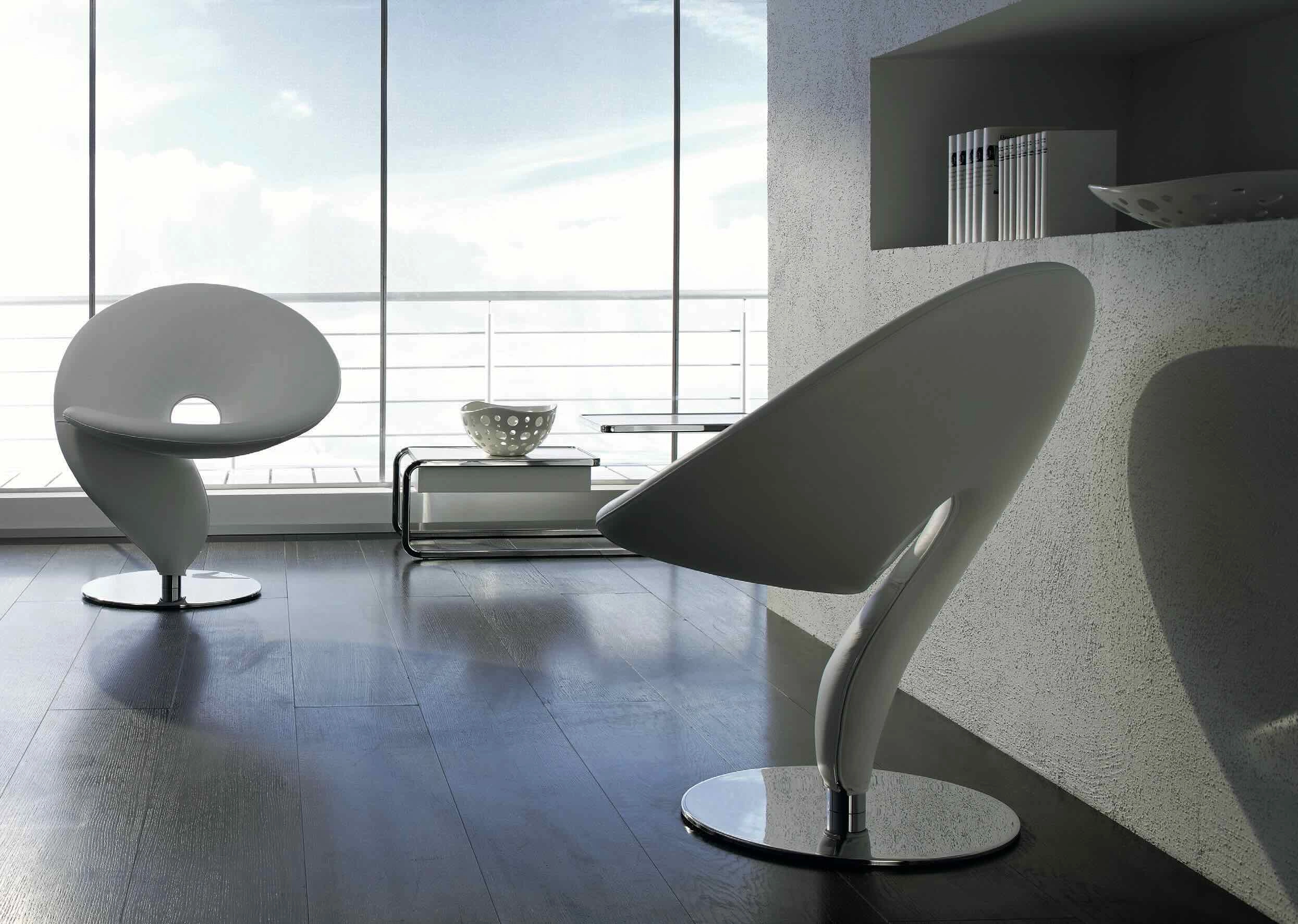 Její extravagantní tvar inspirovaný otazníkem tvoří plynulá zakřivená konstrukce nesená centrální základnou z chromované oceli. Středový sloupek je vybaven otočnou funkcí 360° s návratovým mechanismem, který zajišťuje pohodlné a intuitivní sezení.